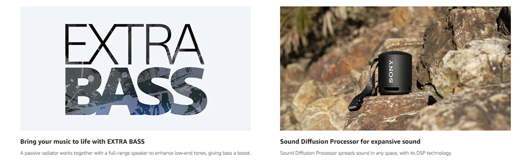 Enjoy big sound with the super-compact SRS-XB13 wireless speaker, featuring EXTRA BASS™, an updated IP67 waterproof and dustproof design1,2, and up to 16 hours of battery life.3 Small enough to fit in a bag or cupholder, the XB13 also features a multiway strap to take it with you everywhere you go.