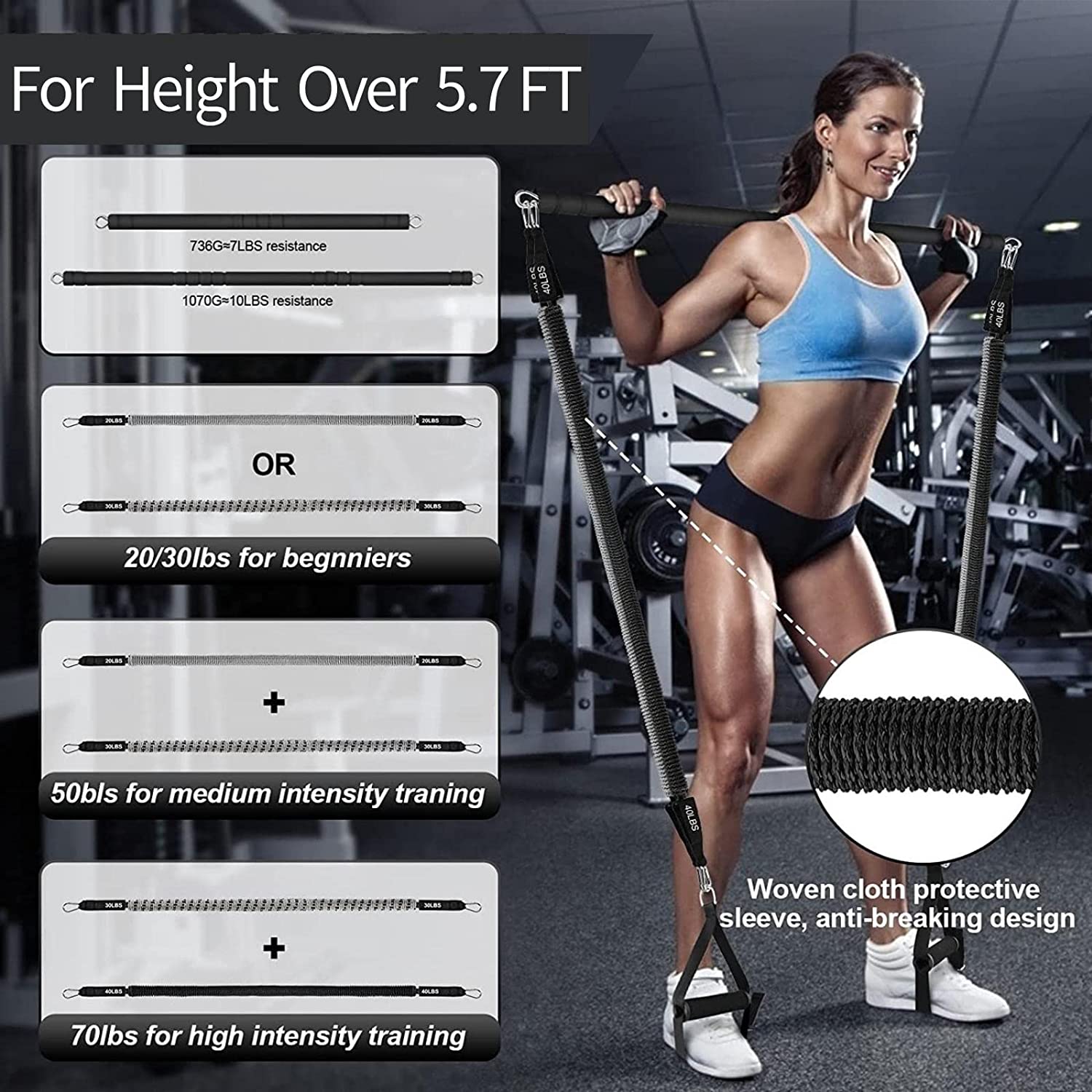 • ✅ 『 All-in-one Full Body Workout 』 Pilates Bar is designed as an all-in-one fitness equipment that can shape the body, exercise muscles, reduce weight, and provide exercises that can be performed without a gym. They have similar functions as barbells, rowing machines, tension bands, yoga kits, and other equipment . You can use it to open your shoulders, beautify your back, say goodbye to butterfly arms, abdomen vest line, shape the S-shaped curve, and create a peach hip !