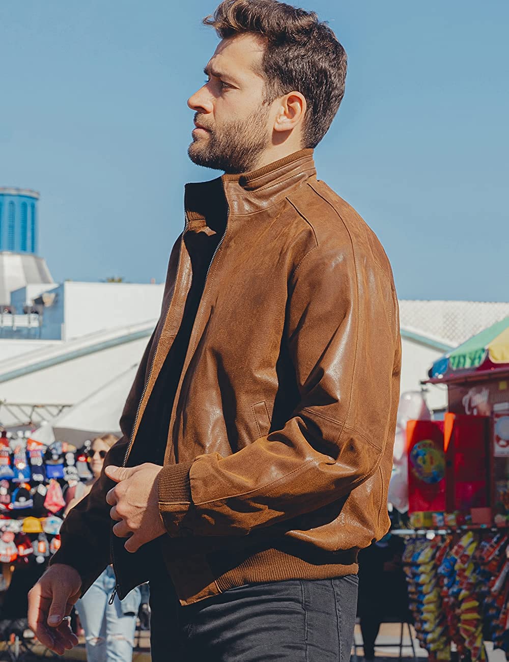 FLAVOR Men's Real Leather Bomber Casual Jacket