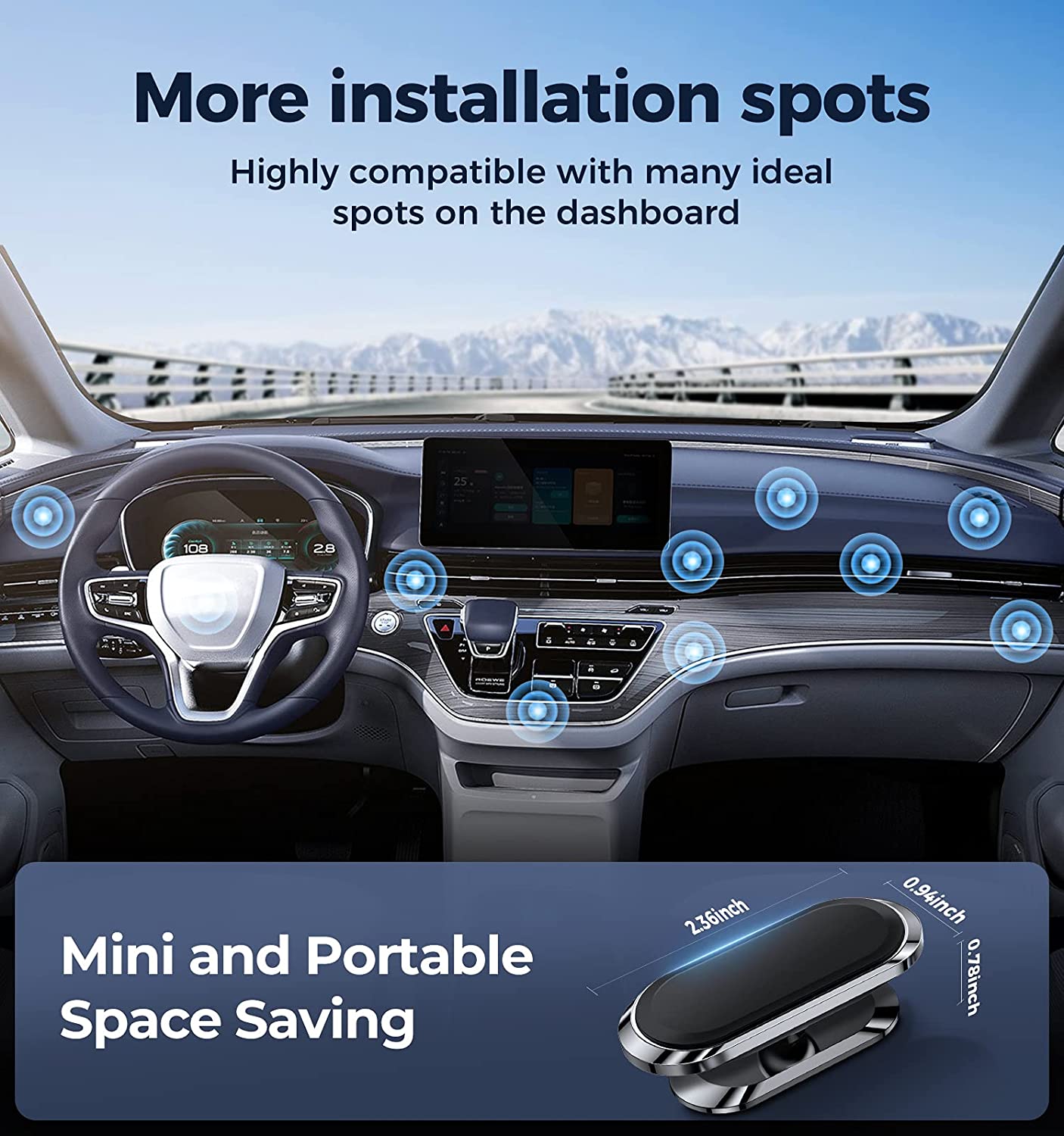 ?【One Second Put & Take】Super convenient, you can put it on or take it off anytime in a second :) Also this Car Phone Mount is portable and only the size of chewing gum. It will not block any view when driving.