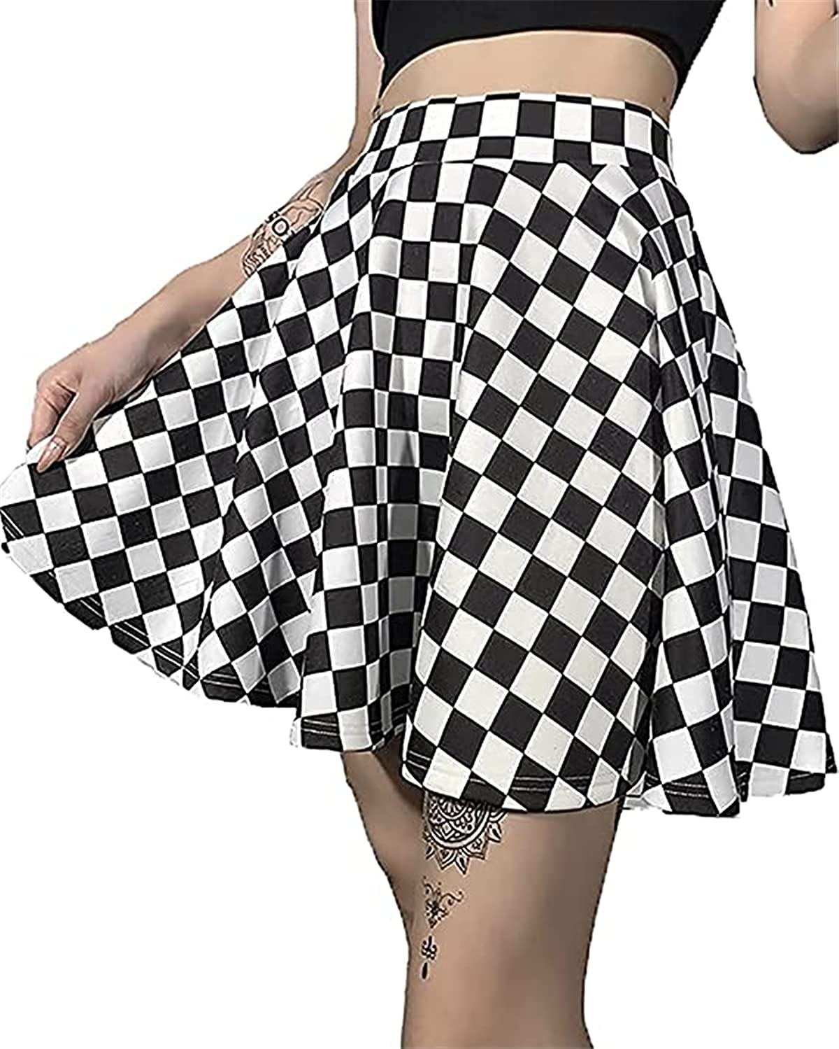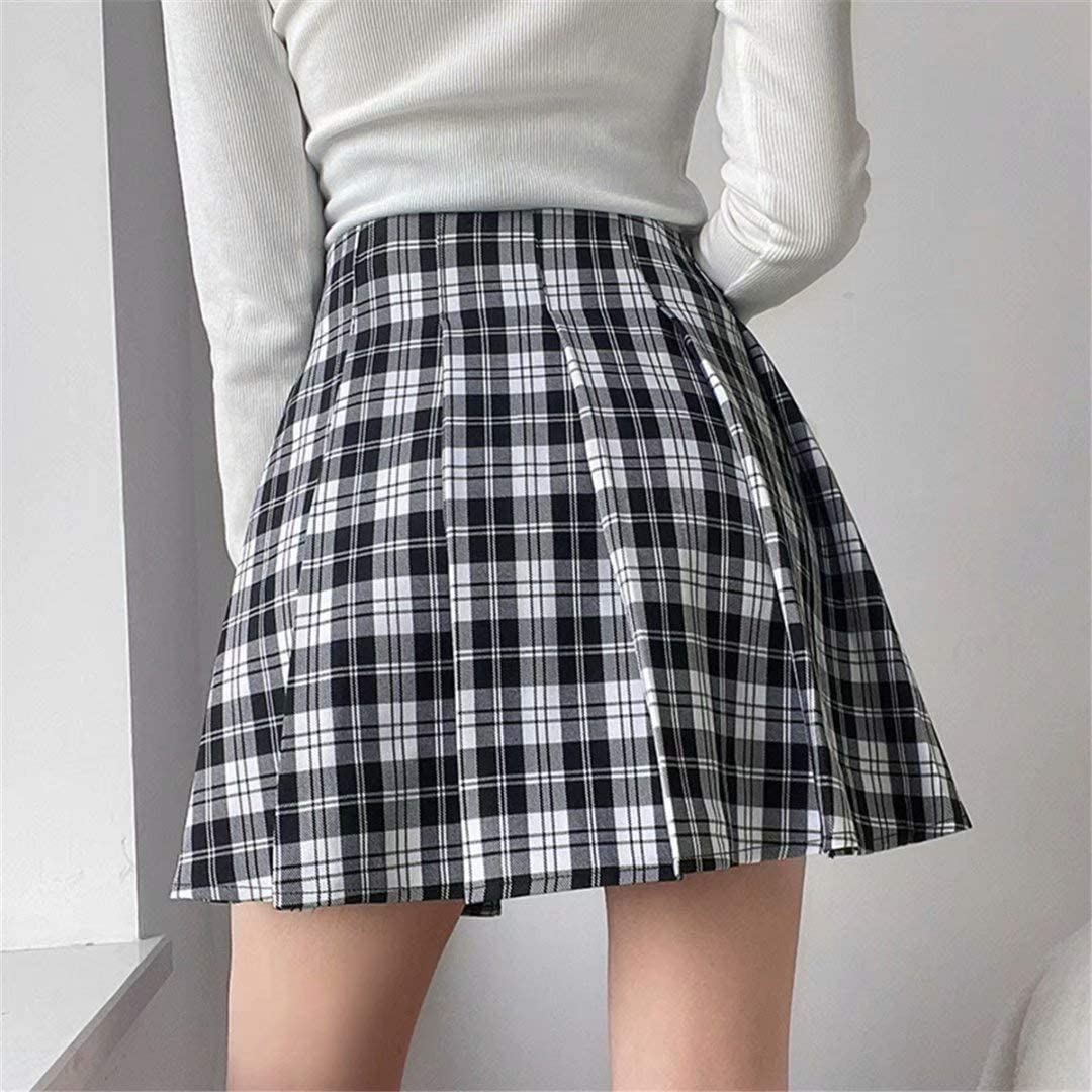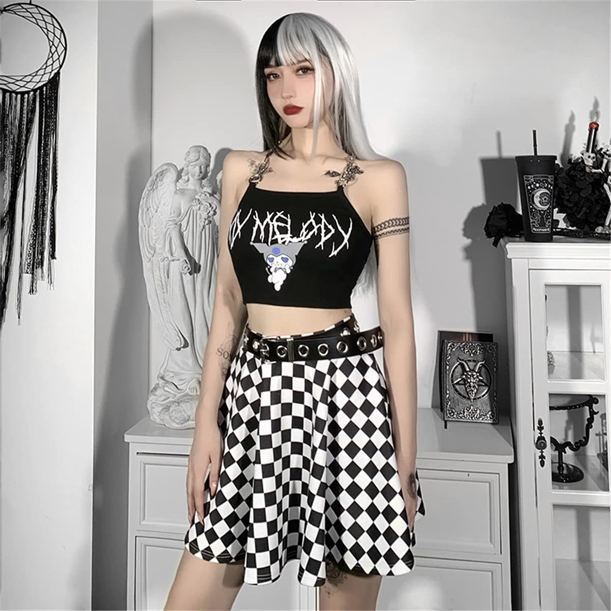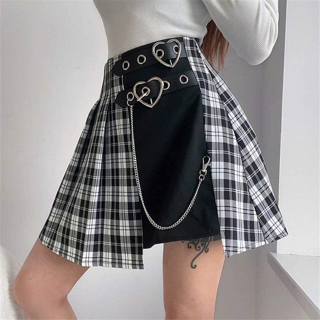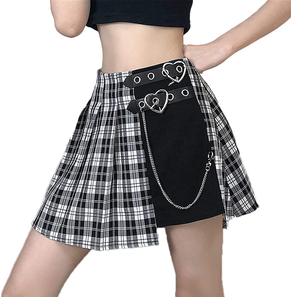 Dlynmoo Women Goth Black Pleated Mini Skirt with Chain High Waisted Tennis Skirt