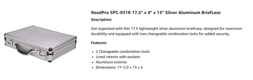 This 17.5-inch silver aluminum briefcase comes with two changeable combination locks for added security. This feature is particularly important for professionals who work with confidential or sensitive information, such as professional truckers with logbooks as well as lawyers accountants and financial advisors. The lined interior with pockets provides separate compartments for note pads pens cell phone and other small items. The aluminum exterior is designed for maximum durability and minimal weight. This is a metal travel briefcase and trucker filing case that weighs less than 5 pounds yet offers sturdy and portable storage for important papers and log books and any other items that are for your eyes only until you deem it otherwise. The lined interior protects your important items and there are plenty of pockets in various sizes to keep things organized - even on long hauls. This aluminum briefcase is also an ideal choice for occasional trips to and from clients and home office with necessary documents for those who looking for alternatives to leather briefcases. These hard case briefcases offer a range of benefits that make them an attractive option for various professions and personal needs including protection from damage during transport and an additional layer of security all while maintaining a professional appearance.