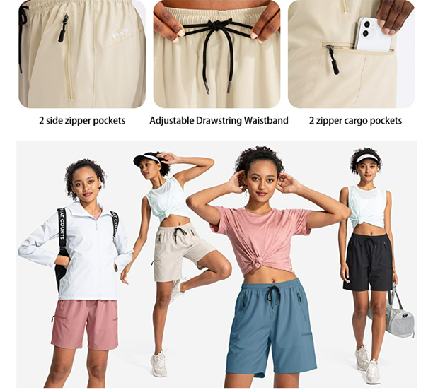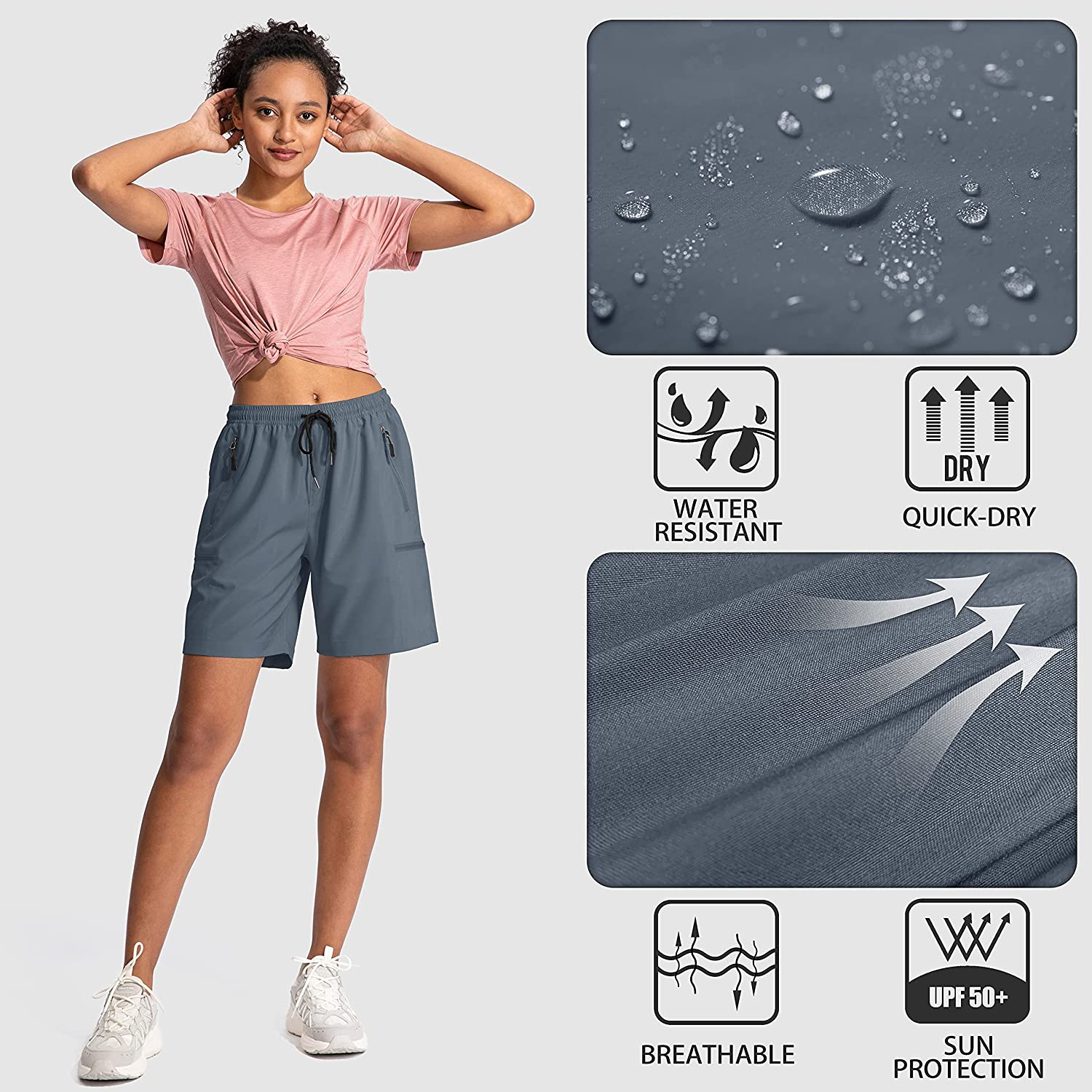 Ligtweight & Quick Dry Fabric: The womens hiking shorts crafted of lightweight, quick dry, breathable and water-resistant fabric helps to repel light moisture to keep you cool and fresh all day.