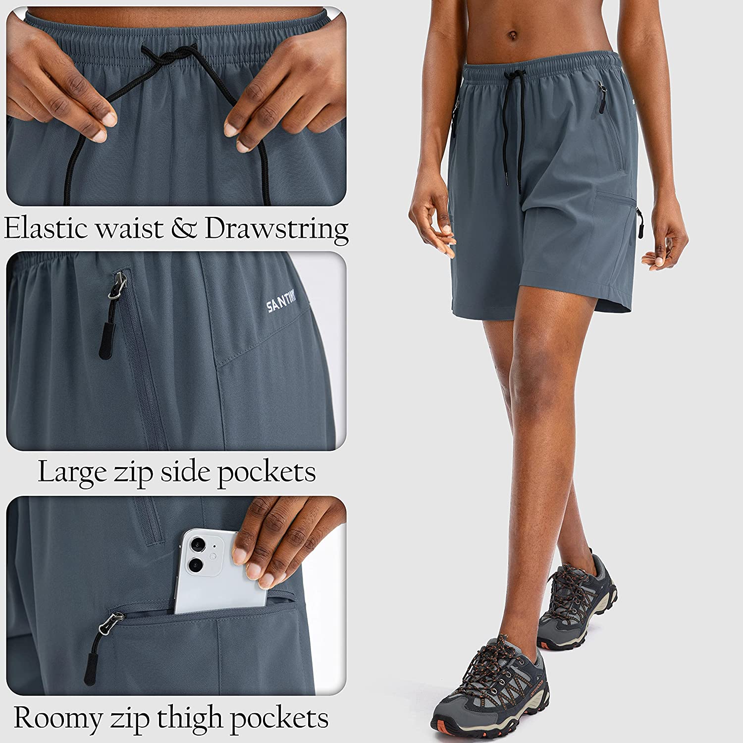 Elastic Waistband: The Santiny womens cargo shorts have a 360-degree elastic waist with adjustable drawstring to prevent pressure marks on the tummy and offers a custom fit during hiking.
