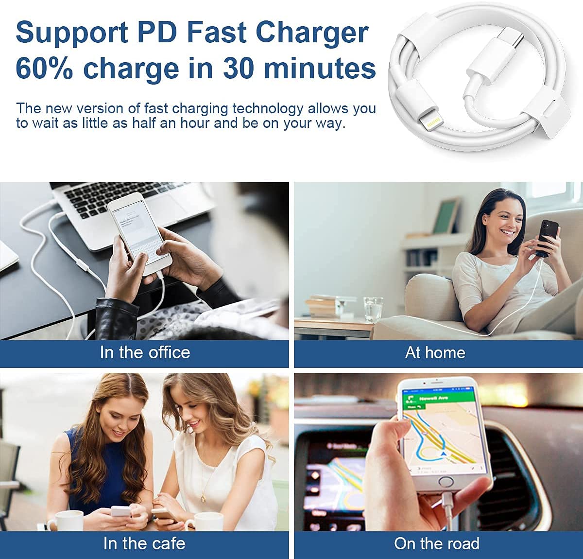 - [Apple iPhone Chargers]20W PD 3.0 USB Type C power delivery wall plug,PD 3.0 Quick-Charge USB C port provides Max 20W output power,charge your device up to 3x faster than the original 5 W charger,charging your iPhone up to 50% in just 30 minutes for iPhone Charging,At 3A Maximum,Helps You Work Efficiently.