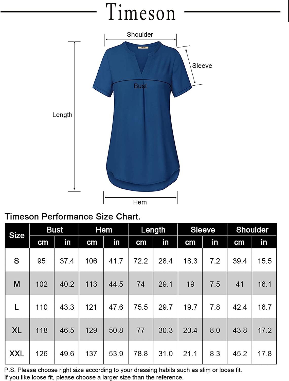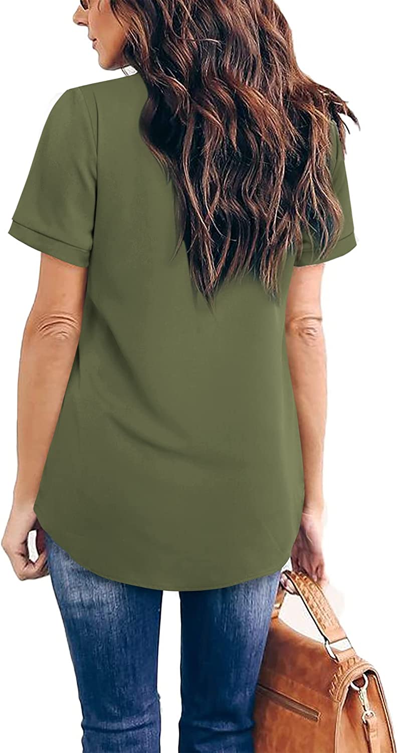Timeson Women's V Neck Short Sleeve Curved Hem Sheer Chiffon Blouse Shirts Tops