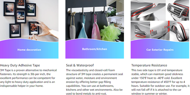• 【Multipurpose Mounting Tape】 Small size, big purpose. Our two sided tapes are versatile, such as door edges, signs, wall hooks, carpet fixing, license plate, DIY, and decoration for automobiles, windows, homes, offices.