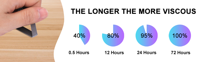 1. This tapes is pressure-sensitive adhesives, the unique acrylic chemistry is extremely durable and the stickiness will gradually increase over time and reaches a maximum after 72 hours. So when sticking heavy objects,you can wait for 72 hours.