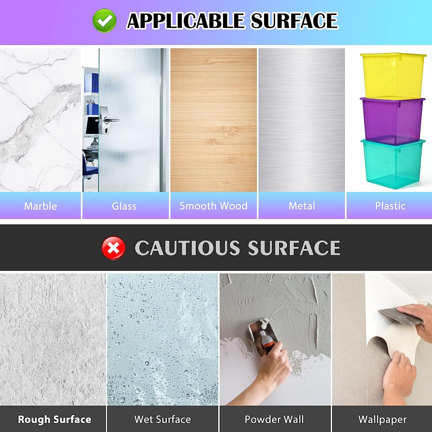 • 【Easy To Use】This foam tape is easy to install and removal, and bonds to a wide variety of smooth and clean surfaces such as glass, metal, plastic, tile, wood, marble, and more! Not suggested for wallpaper, fabrics, textured walls, brick, and other rough and non-stick surfaces.
