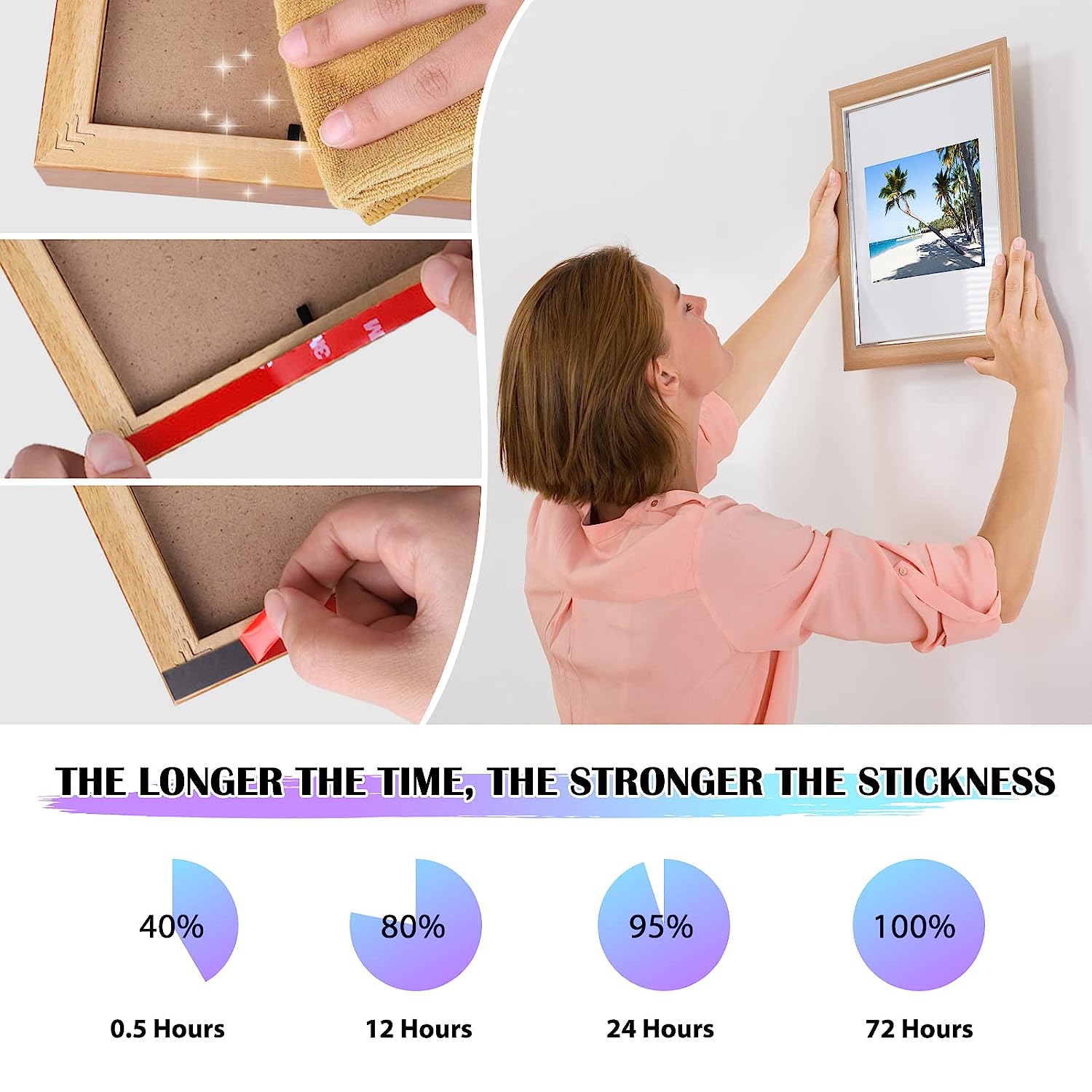 • 【Heavy Duty Tape】Consists of acrylic foam, which strength is 3lb per inch. Super elasticity can be extended according to your requirements without break. Affected by special pressure-sensitive materials, the initial viscosity of the tape is relatively small. The viscosity will gradually increase over time and reaches a maximum after 72 hours. You can freely mount large or heavy objects.