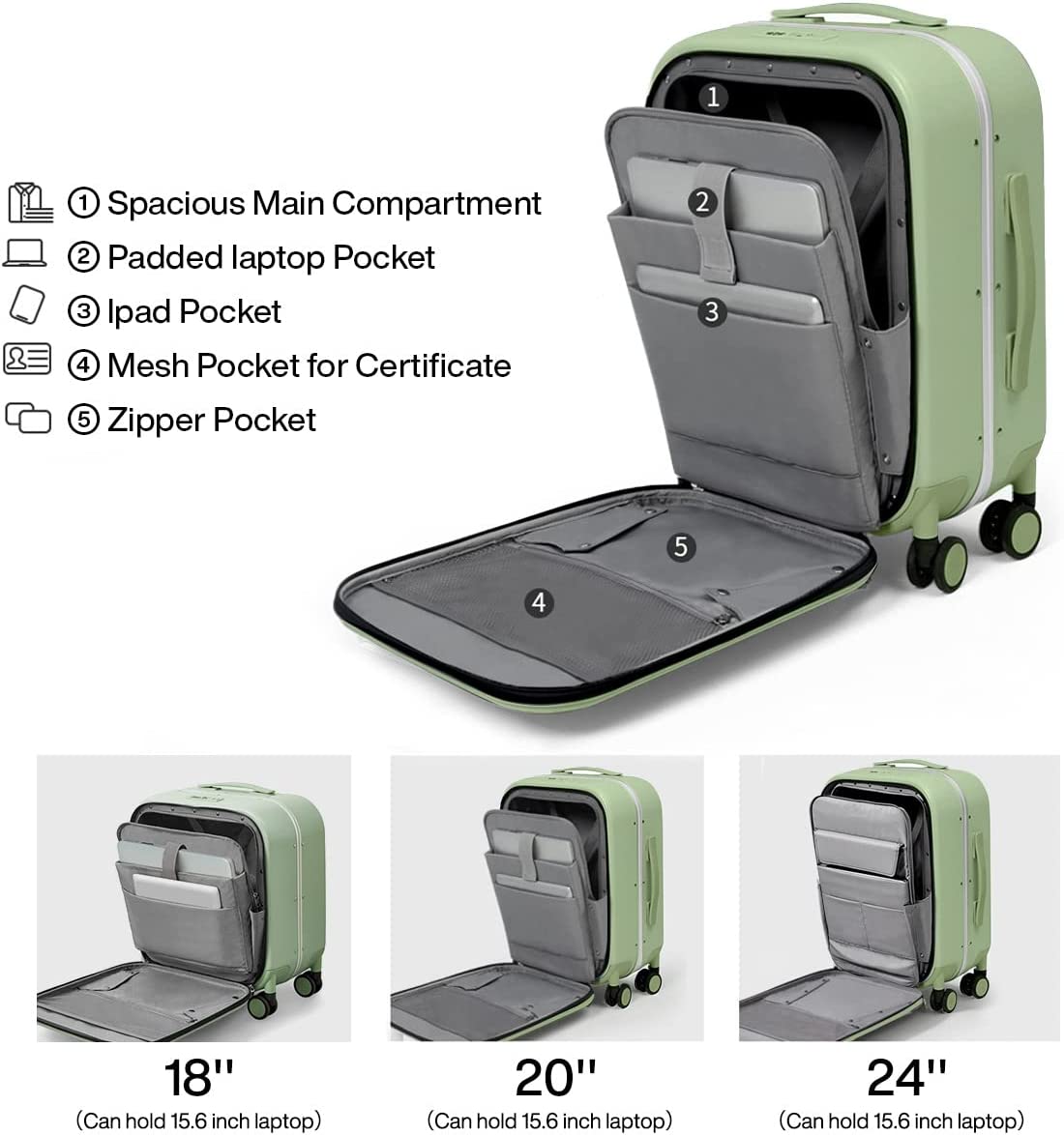 【INNOVATIVE DESIGN】Front Laptop Pocket helps quickly access your essentials like 15.6'' laptops, documents and more, assist you save time. Stylish and beautiful design, this hard luggage has won the Kapok Award.