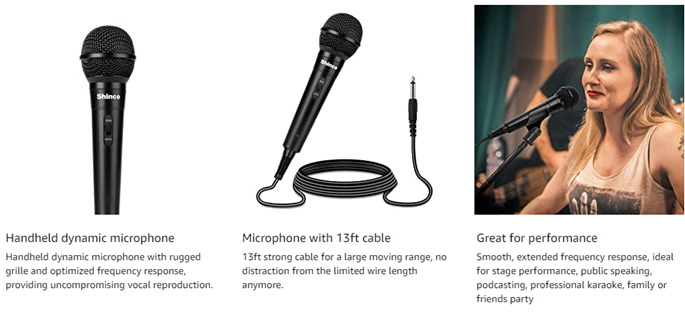 Premium Sound Quality - This Shinco handheld dynamic microphones offers cardioid pickup pattern, capturing your own output and filter out dozens of unwanted sounds, it is perfect for anyone that wants to record or perform live either indoor or outdoors.