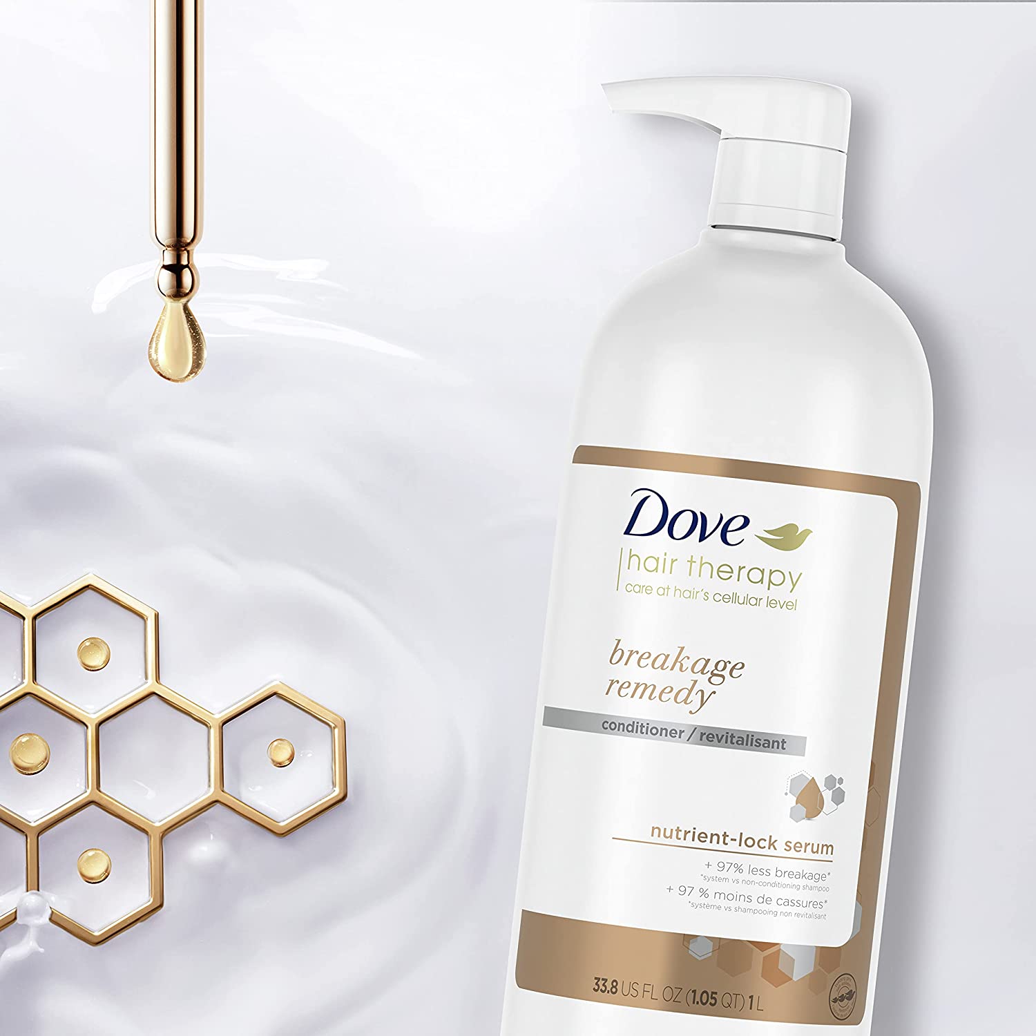 Dove Hair Therapy Conditioner for Damaged Hair Breakage Remedy Hair Conditioner with Nutrient-Lock Serum 33.8 oz