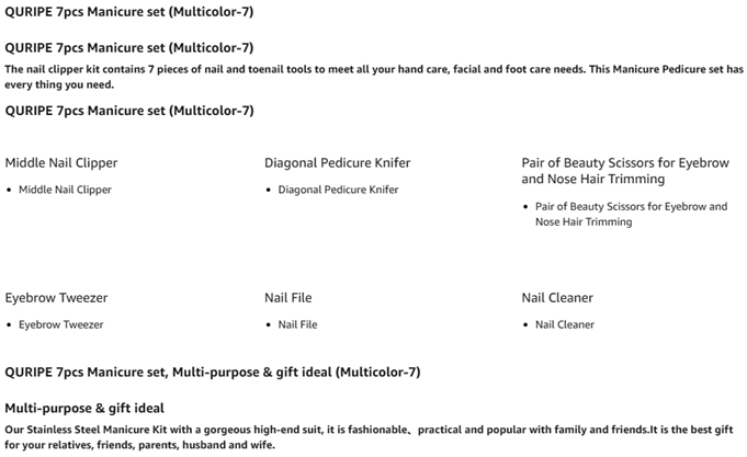 QURIPE 7pcs Manicure set, Nail Clippers Kit, Stainless Steel Manicure Kit, Nail Clipping Tools Portable Travel Grooming Kit, The Best Gift with Luxurious Case(Multicolor)
