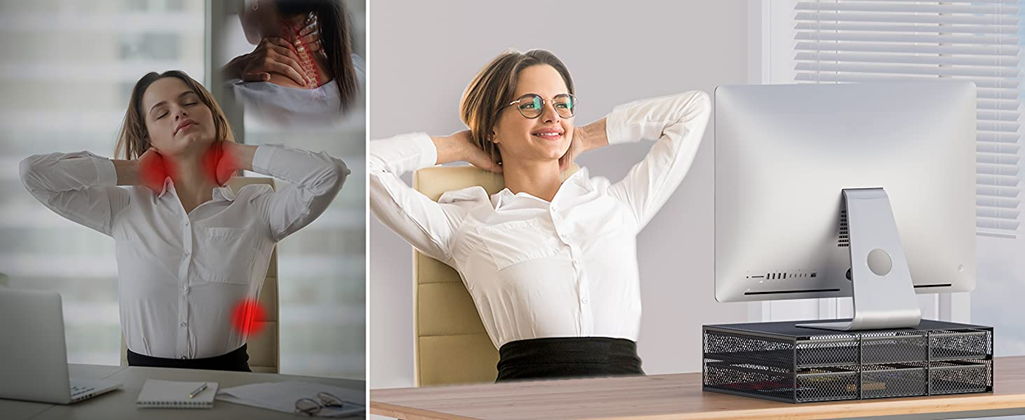 • Ergonomic: Raise TV, monitor or laptop by 4.7 inches off the desktop to create a comfortable viewing position and a better healthy sitting position which help reduce stress on the neck and back.