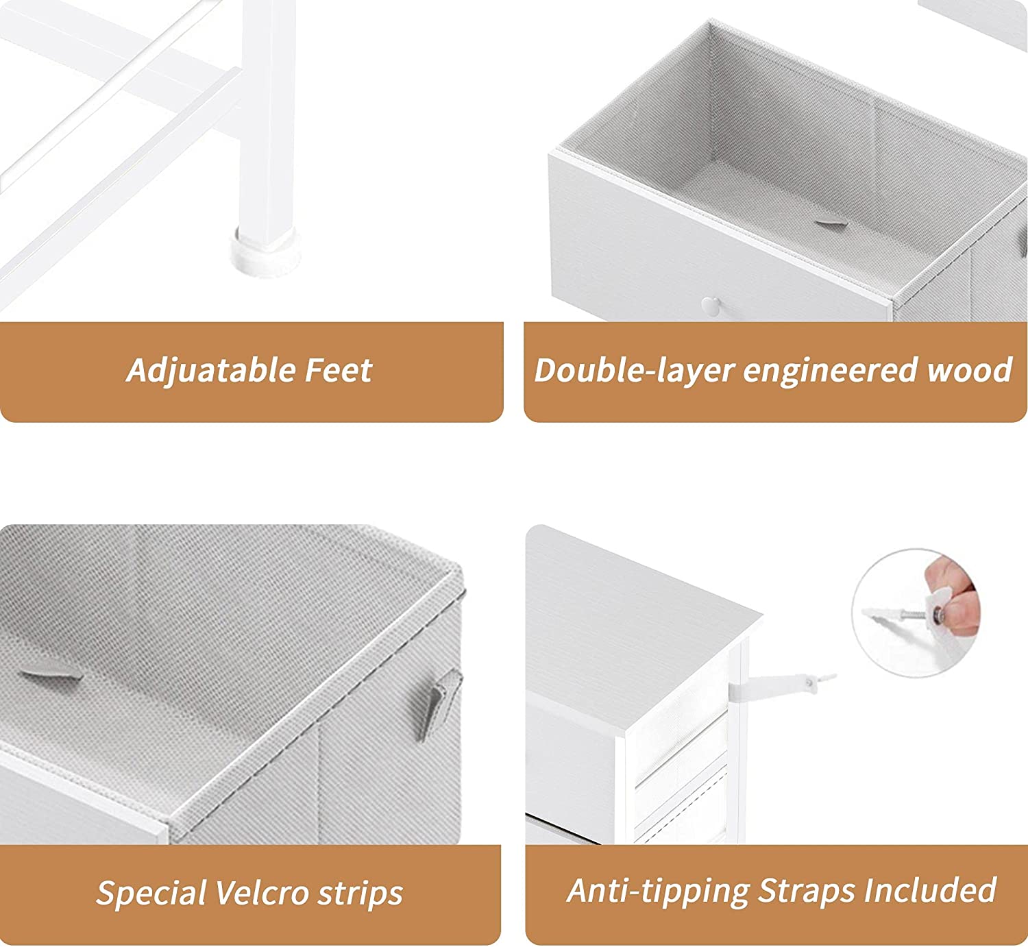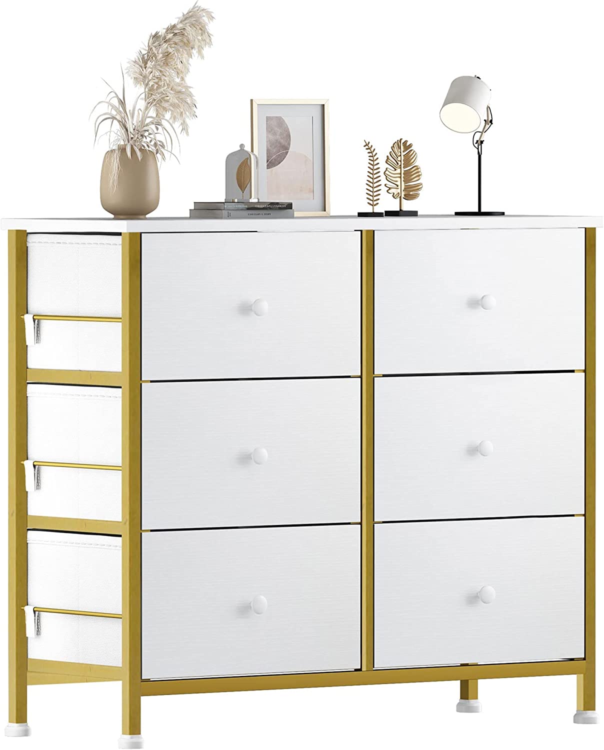 [White Dressers & Chests of Drawers]: Features 6 removable storage drawers made of high-quality non-woven fabrics, wooden front , Wooden handle is not only convenient but also beautiful,no matter kids or adult. Overall dimension: 31.5''*11.8''*28.7''.Drawer dimension: 14.6’’*11.8’’*7.9’’.