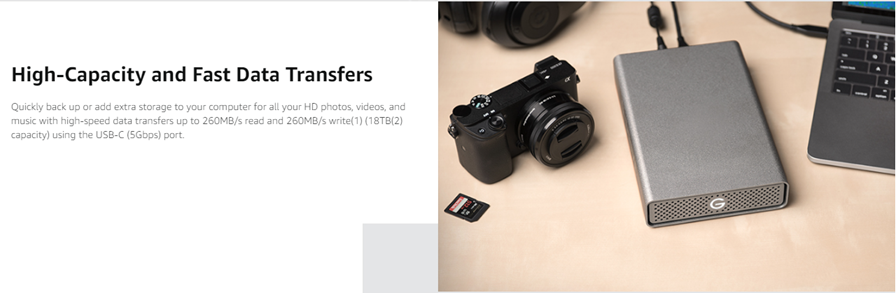 Quickly backup or add extra storage to your computer for all your HD photos, videos, and music with high-speed data transfers up to 240MB/s read and 240MB/s write using the USB-C (5Gbps) port. (1 MB/s = 1 million bytes per second. Based on internal testing; performance may vary depending upon host device, usage conditions, drive capacity, and other factors).