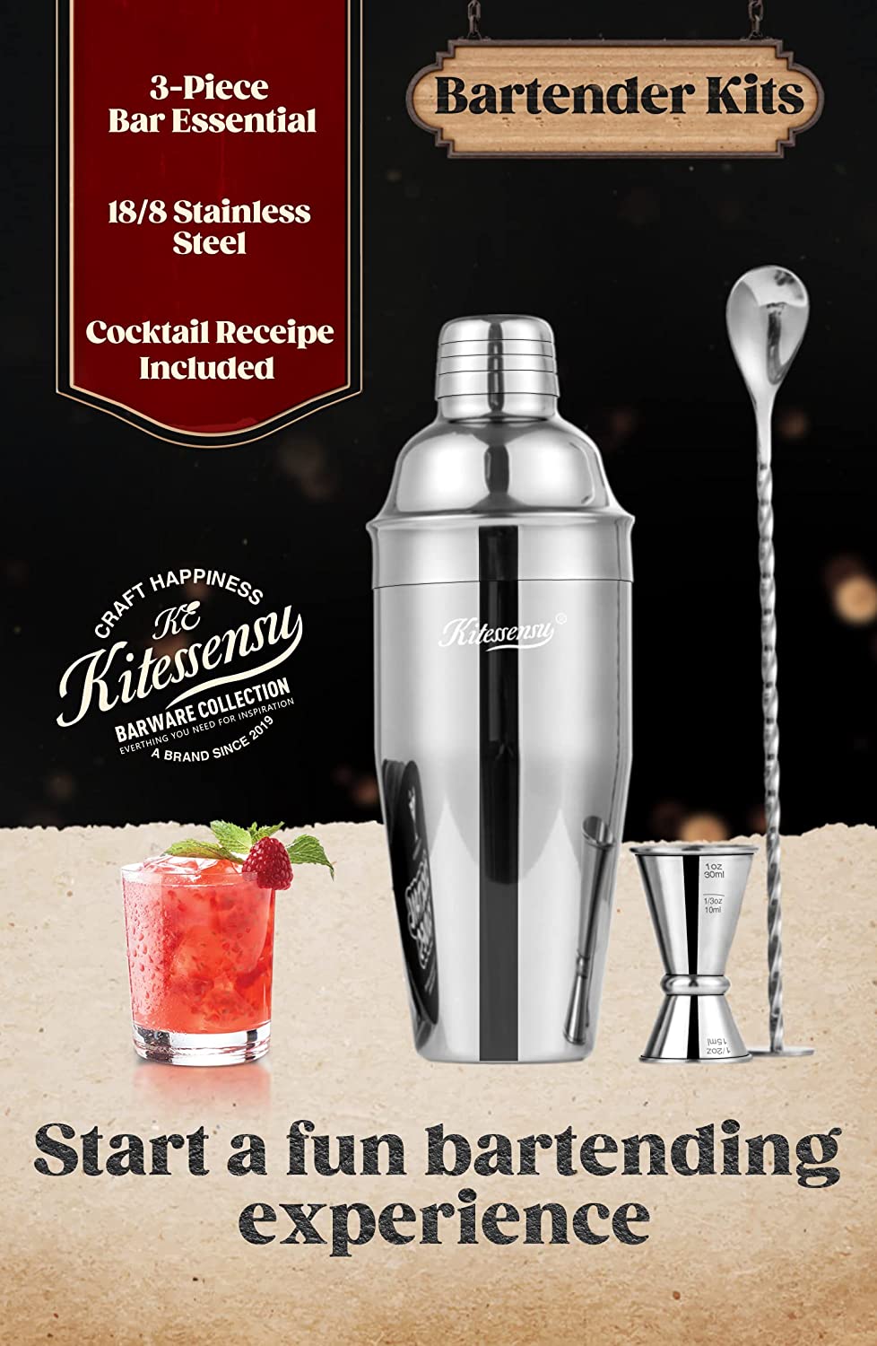 Add Master Mixologist to Your Resume: Curated by KITESSENSU with the cocktail enthusiast in mind, this 3-piece cocktail shaker set has everything mixology kit you need to make cocktails, whether you’re a bartender looking for quality drink mixer set, or a home mixologist to get started creating and serving drinks from your own entertainment space