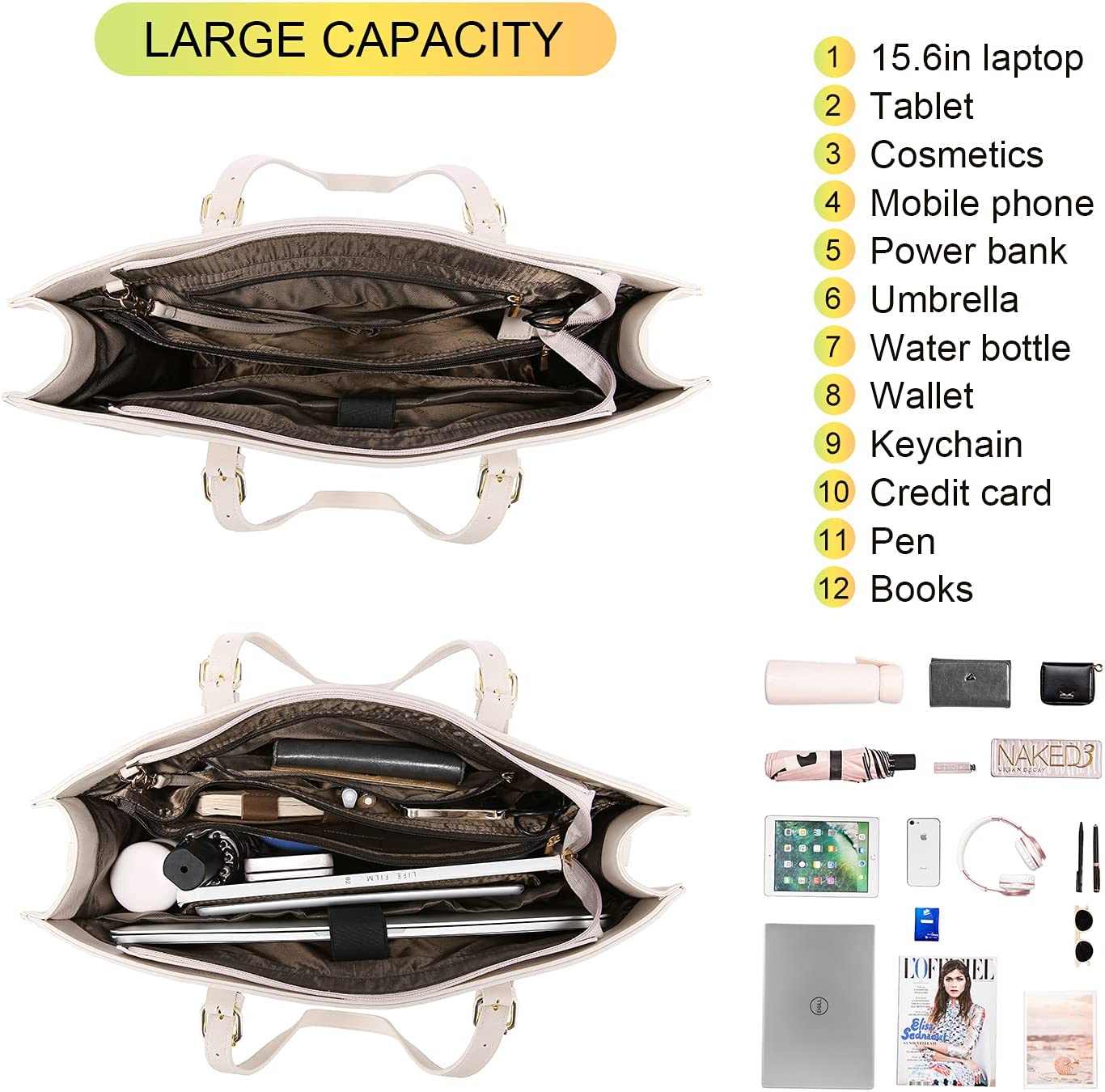【Large Capacity Laptop Bag】The women laptop bag size in 17" L x 6" W x 11.5" H. The Computer bag is structured and roomy, and can accommodate a 15.6-inch laptop, thickened soft foam protective pad lining can fully protect your laptop from accidental impacts and scratches. In addition, the large-capacity shoulder bag can also store iPad, books, A4 files, mobile power, mobile phones, folders, passports, cosmetics, etc.It can carry all your essentials!
