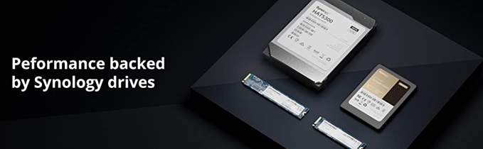 • Compatible Drive Type - 3.5 inch SATA HDD, 2.5 inch SATA HDD (with optional 2.5 inch Disk Holder), 2.5 inch SATA SSD (with optional 2.5 inch Disk Holder). "Compatible drive type" indicates drives that have been tested to be compatible with Synology products. This term does not indicate the maximum connection speed of each drive bay