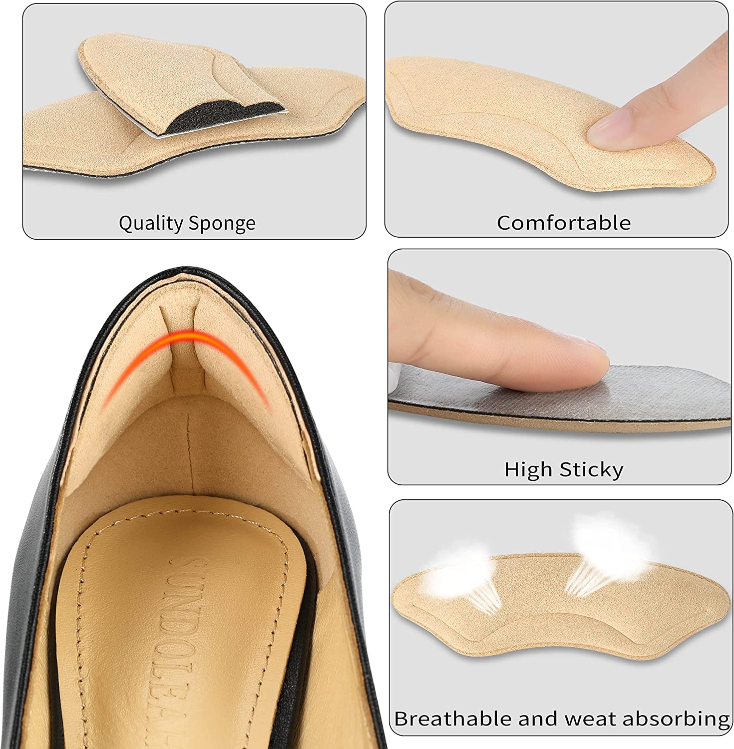 Rational Design: Designed to fit the contour of the heel section of the shoe; Microfiber leather surface instead of plastic or silicone, softly and effectively stop your feet from slipping out of your shoes.