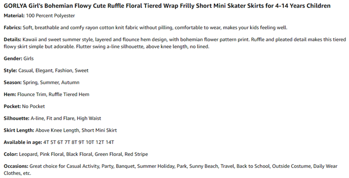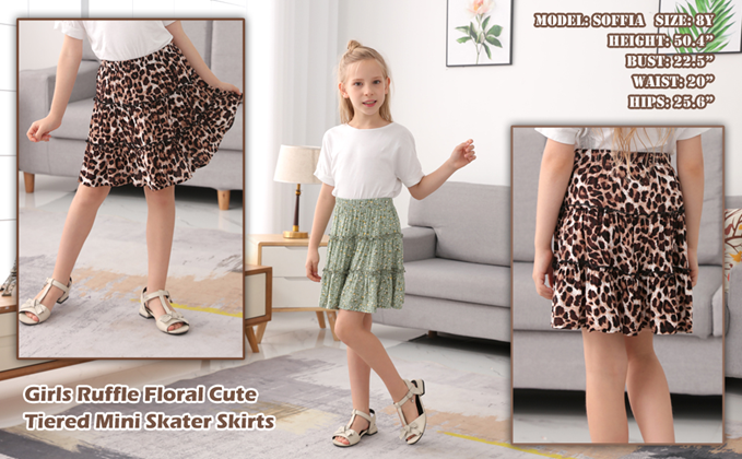 GORLYA Girls Ruffle Floral Boho Flowy Cute Tiered Short Mini Skater Skirts 4-14T