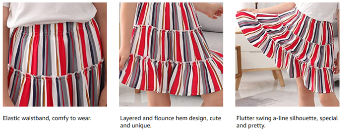 • Features: Cute and refreshing casual summer style, layered and ruffle hem design, with bohemian pattern print. High elastic waist makes this pleated circle skirt fit and beautiful. Flared swing aline silhouette, above knee length, no lined.