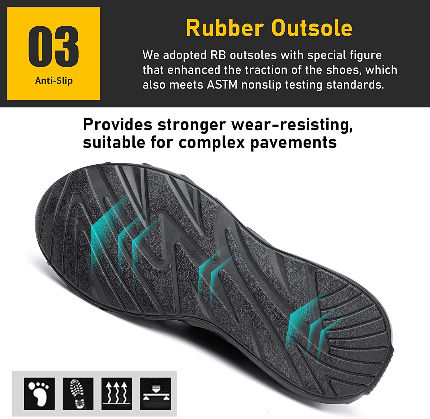【Steel Toe Cap】: The composite toe shoes for men can help to protect your feet from falling or rolling objects, greatly enhance the safety.