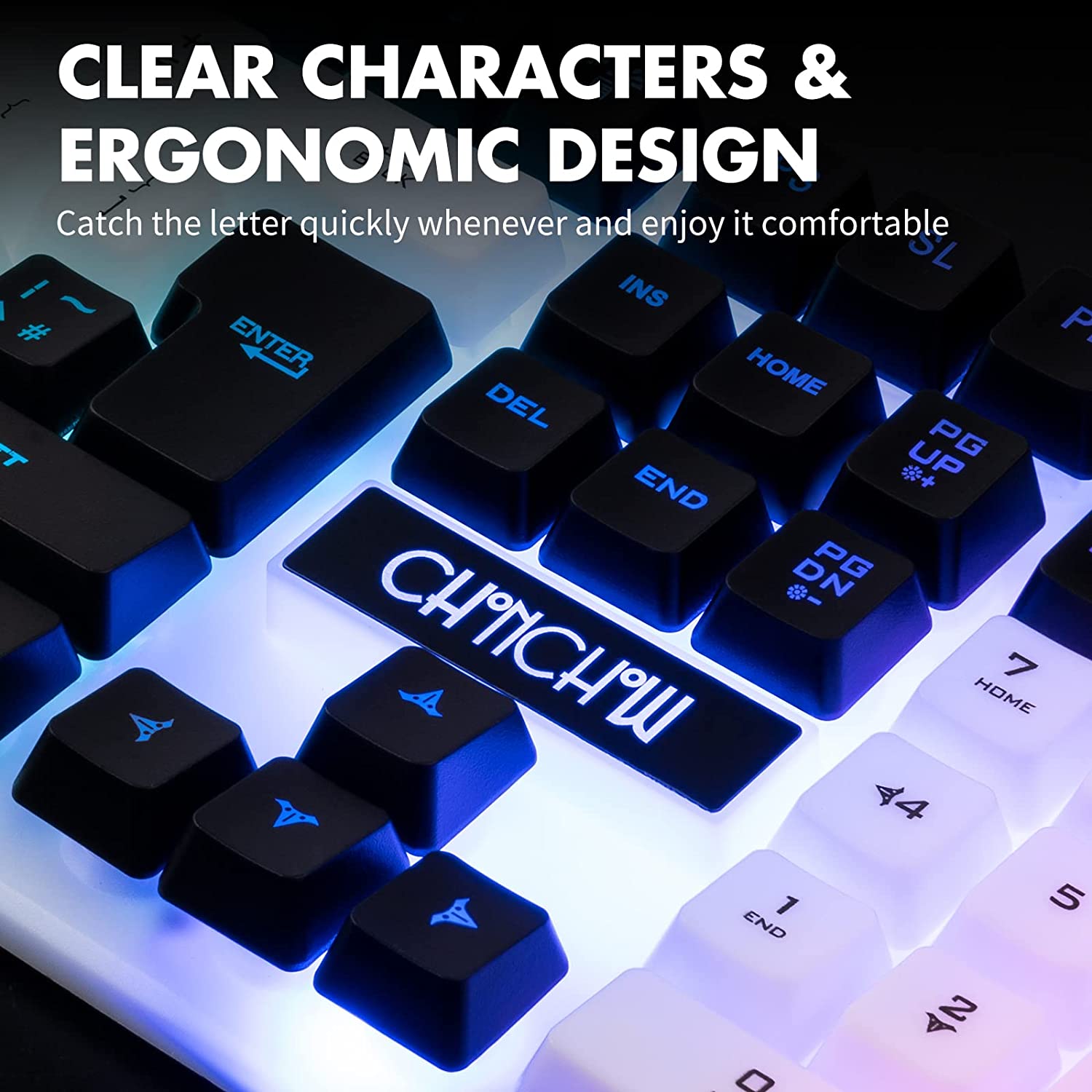 • ILLUMINATED KEYCAP WITH HIGH CONTRAST DESIGN--The high contrast black keys surround the business keys,more convenience to click without sight on it.The characters are clean in the backlit.