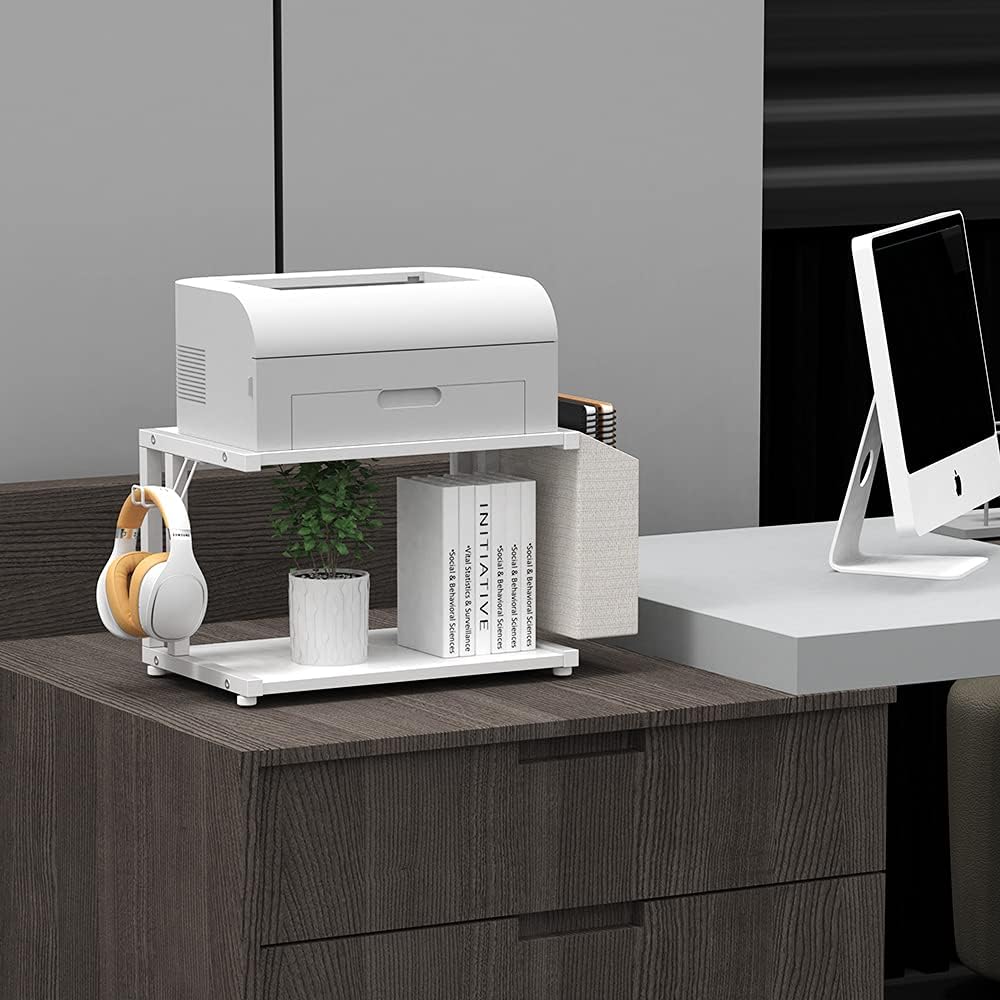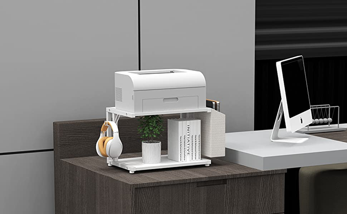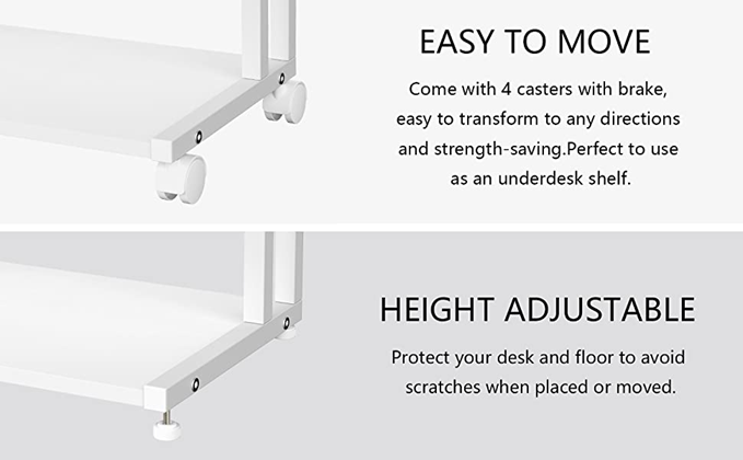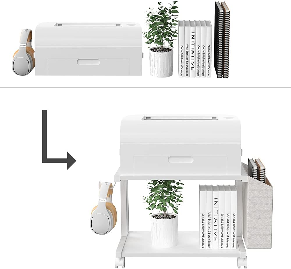 • 【SPACE SAVING】The 2 tier printer stand can be used as a desktop shelf or as an under desk organizer, and also provide an additional Storage Bag. Storage bag will help organize your working space at home or office more efficiently.