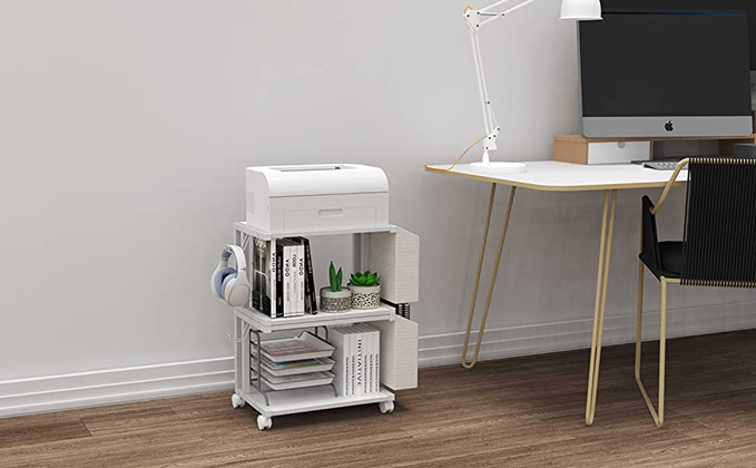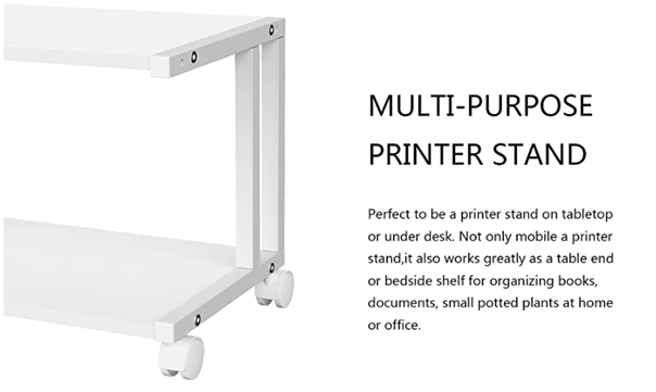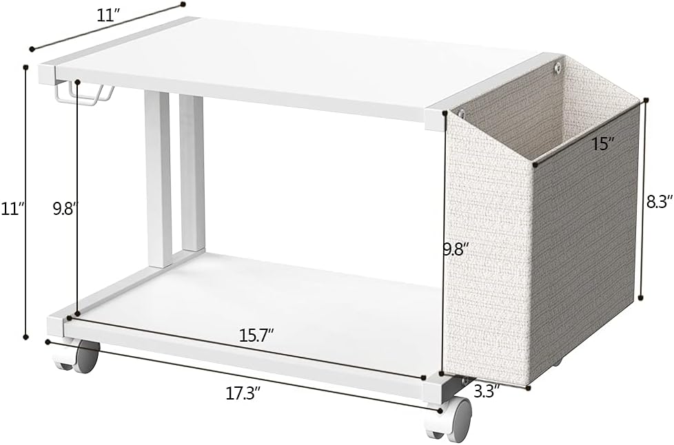• 【MULTI-PURPOSE 2 TIER MOBILE SHELF】Dimensions: 17.3''/Lx11''/W’x11''/H-Ideal size for small 3D printers, fax machines, scanner and other office supplies. Our multifunctional desktop printer shelf can also be used as office organization, dorm essential, book shelf, storage shelf, and so on. It can be used in home, office, dorm, craft room as an ideal organizer and storage.