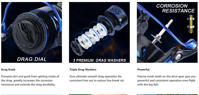 - High-Power:Sougayilang's Powerful Drag System provides an incredible maximum braking force of 17 pounds. It has a hardened metal spindle, perfect meshing drive gear and precision-machined pinion gear, which can exert excellent fishing ability.