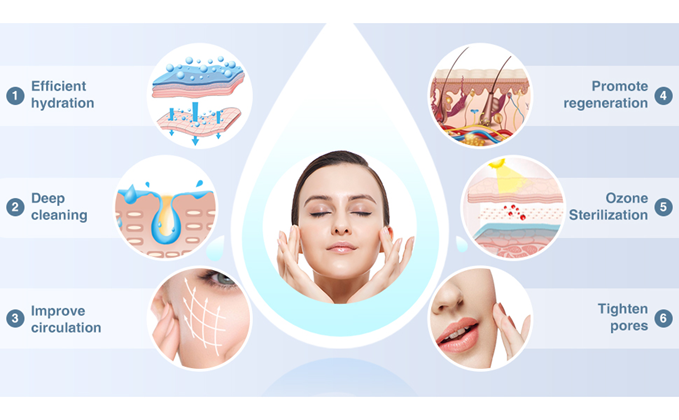 • 【Ozone atomization function】:Ozone atomization can sterilize, soften the stratum corneum, and promote blood circulation, which is essential for healthy skin.