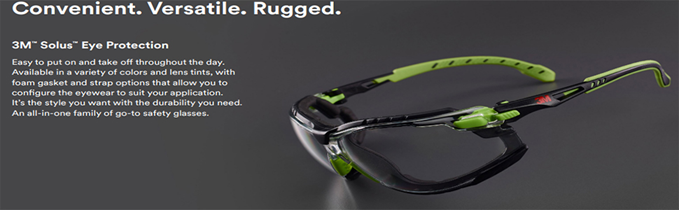 3M Solus 1000 series protective eyewear features Scotchgard Anti-Fog lens coating which helps workers see clearly, longer – providing longer lasting fog resistance than traditional anti-fog coatings. When microscopic water droplets land on lenses without any type of coating, they bead up and form condensation and fog, obscuring your vision. Scotchgard Anti-fog Coating produces a reduced-contact angle, flattening the water beads into a thin, transparent film of water that allows light to pass through. The coating retains its effectiveness for at least 25 washings with water, allowing workers to wear their eyewear longer. The coating can be disinfected with diluted bleach soaking or alcohol wipes without losing its anti-fog performance. Washing with soap and water is considered a best practice and can enhance coating durability. These safety glasses have a low profile and are available in bold, modern colors for a personalized style. Based on 3M internal testing per EN168 test method when compared with traditional anti-fog coatings. Meets the High Impact Requirements of CSA Z94.3-2007 and the High Impact Requirements of ANSI Z87.1-2020.