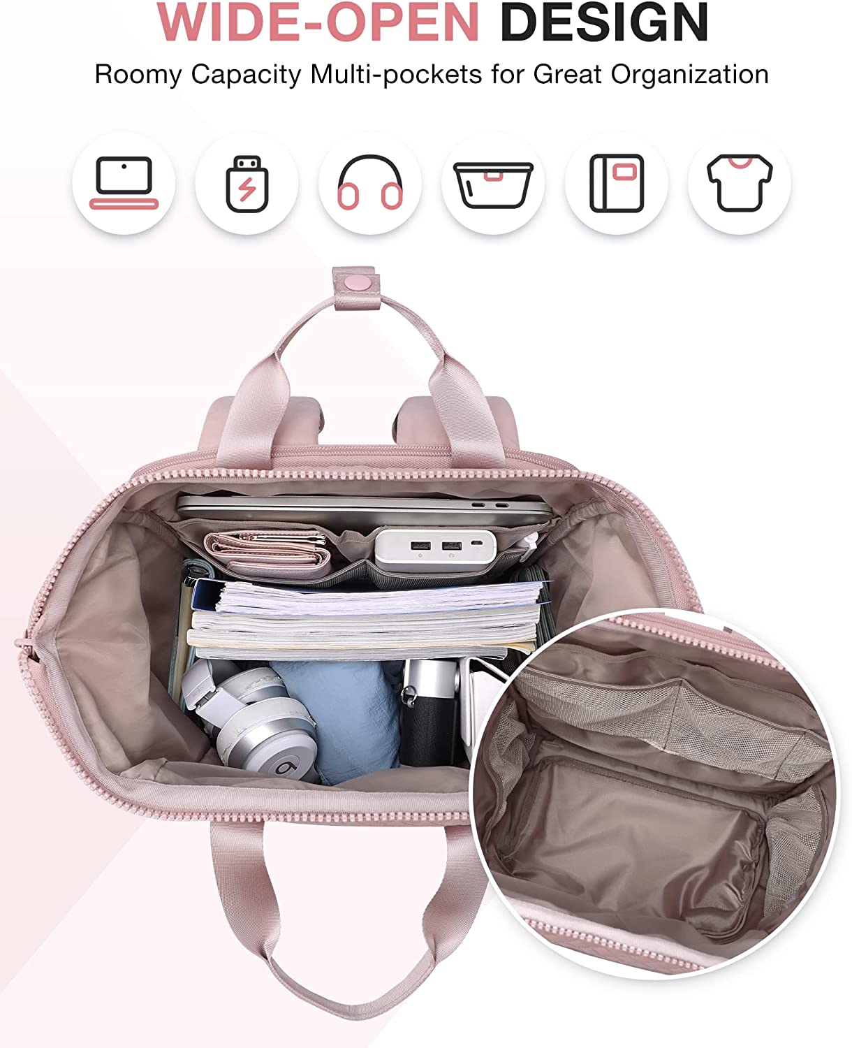 BAGSMART Lunch Backpack, 15.6 Inch Laptop Backpack for Women, Insulated Cooler Lunch Box Water Resistant Leakproof Lunch Bag College School Bookbag for Women Men Daily Work Travel (Pink)