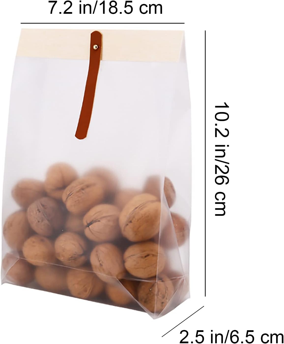☺Features1.Reusable, durable, clean.2. Fit for business :you can paste your brand label on the surface for retail or sample display packaging3.Things wrapped with it are like exquisite small gifts, which are necessary for baking, home kitchen, and parties.4.For decoration, weddings, baptism, parties, birthdays, anniversary,camping, product shows, commercial use etc.☺How to use 1.First pass the wood grain card and one side of the bag with a buckle2.Fold down the wood grain card, then pass through the other side3.Finally buckle the leather strip☺Specifications:1.Type:Cookie Bags2.Material :PP3.Size:S:5.1x2.3x7in/13x6x18cmM:5.9x2.5x8.6in/15x6.5x22cmL:7.2x2.5x10.2in/18.5x6.5x26cm4.Color:Clear5.Package Weight : 0.55kg☺Package Includes20 x Stand up plastic bags