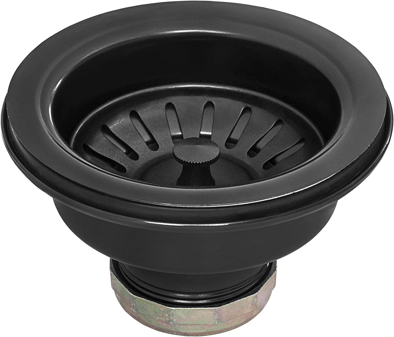 - MATCHING COLOR (Gunmetal Black) BASKET STRAINER drain assembly included. [Note: Basket strainer only works with standard plumbing. If installing a garbage disposal unit, use matching color disposal flange (Model # RVA1041BL) sold separately] | Stainless Steel BOTTOM PROTECTIVE GRID included - protects your sink surface and acts as a drying rack.