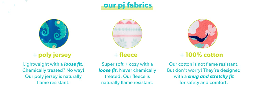 • Cotton tops are not flame resistant. To help keep children safe, cotton pajamas should always fit snugly. Fleece pants are flame resistant
