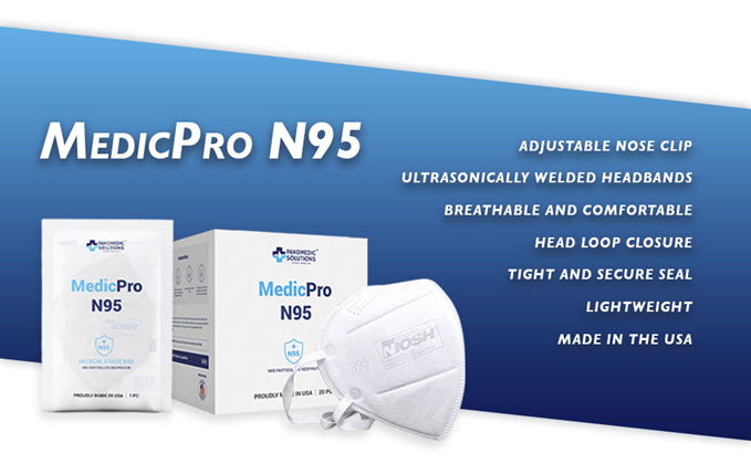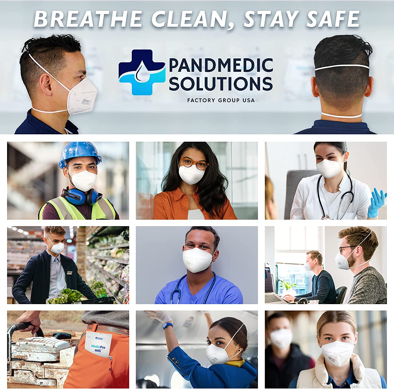 MedicPro N95 Mask NIOSH Approved Made in USA - N95 Particulate Respirator Filter Efficiency≥95% - White 5 Layer Face Masks for Men Women Adults and Health Workers, 20 Pack