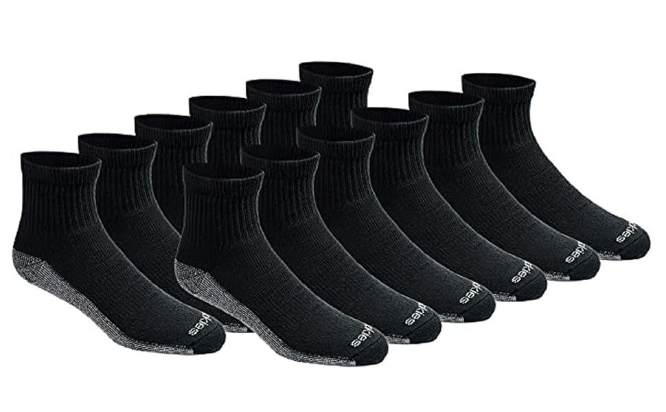 Dickies Men's Dri-tech Moisture Control Quarter Socks Multipack with wicking, moisture management fibers keeps feet dry, ventilation channels engineered for air circulation and moisture control, arch compression hugs feet and keeps socks in place, while providing in-step support, Reciprocated heel and toe for superior fit and full cushion comfort.