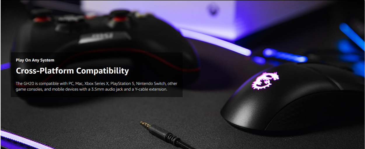 MIS Immerse GH 20 Featuring ultralight weight design, 2.5CM thick ear cups design, 40mm driver units, quick inline controller and cross platform compatibility