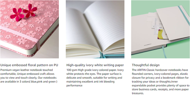 • 100gsm A grade writing paper and first class printing and binding quality help you to record your creative ideas and feelings