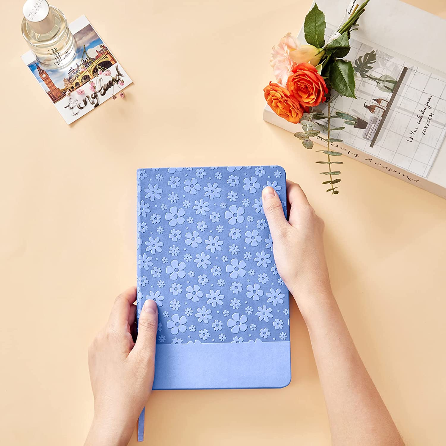 ARITIN Journal for Women-Journal Notebook Hardcover 208 Pages Lined, PU Leather Notebook Embossed Flowers, 5.7 X 8.4 in, 100gsm A grade Paper, Light Blue