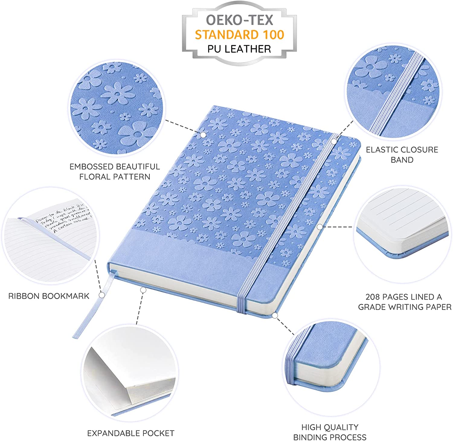 • ENVIRONMENT FRIENDLY, SAFE, BEAUTIFUL GIFT - All the journal notebook materials are certified for environmental and health safety regulations, OEKO-TEX standard 100 (PU leather)/ REACH/ ROHS. The rounded corners can avoid any physical injury.