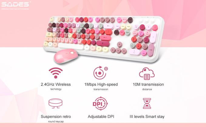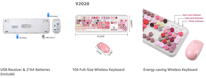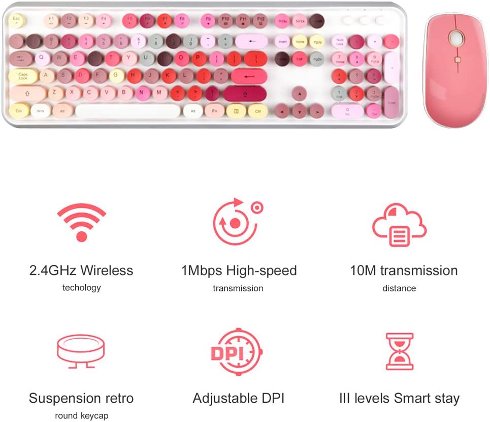 • 【GORGEOUS COLOR RETRO ROUND KEYPAS 】The inspiration of these cute rounded keys come from vintage typewriters offering you visual enjoyment and retro feeling to type. Every keyboard is painted with more than 10 kinds of color to help you be outstanding in the office.The mini Optical mouse is with modern ergonomic design,DPI adjustable(800-1200-1600).