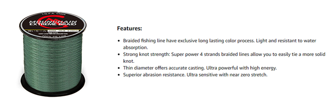 • Long Lasting Coating - Unlike braid lines using water-based dyes that wear off easily and allow water to penetrate the fibers, the braided line utilizes an unique coating that is the best at preventing color fading and color loss, and increases UV resistance.