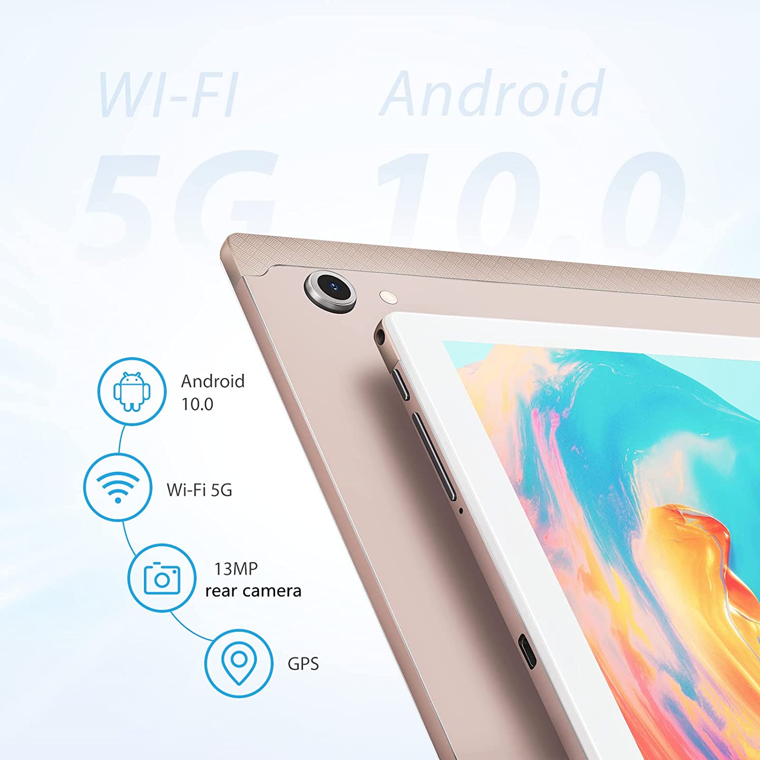 • 【Android 10 Tablet With Dual Cameras】The android 10 tablet comes with 4GB RAM and 128GB interal storage,also up to 128GB of additional storage.5MP front and 13MP rear camera can take photos in the dark with flash, make video calls and record your life. In addition, the tablet has passed Google GMS certification. You can download your favorite apps directly on Google Play.offers live caption, gesture navigation, privacy controls, and full access to Google Play Store,etc.