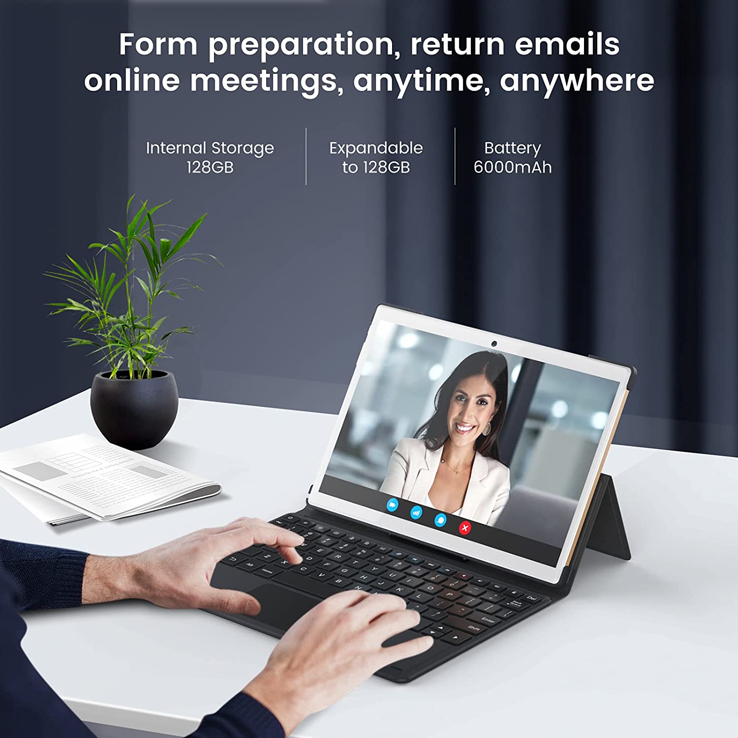 • 【AS a PC,AS a tablet】With the growing popularity of online offices,We designed a tablet with a trackpad keyboard.By mounting the 2 in 1 keybord, you can type on your tablet with greater ease anywhere and anytime.It can increase office productivity without problems. Many games can be played during entertainment.It's edge design measures 9mm, but still has a 6000mAh rechargeable battery working inside to provide 6-12 hours of working time or entertainment time and 20 days of standby time.