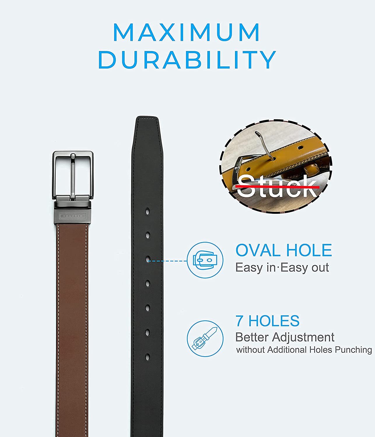 • EASY IN EASY OUT - CHAOREN reversable belt have 7 oval holes,Extra 2 holes are for adjustment and gift ideas. For best fit, order a size 2" larger than your waist size.