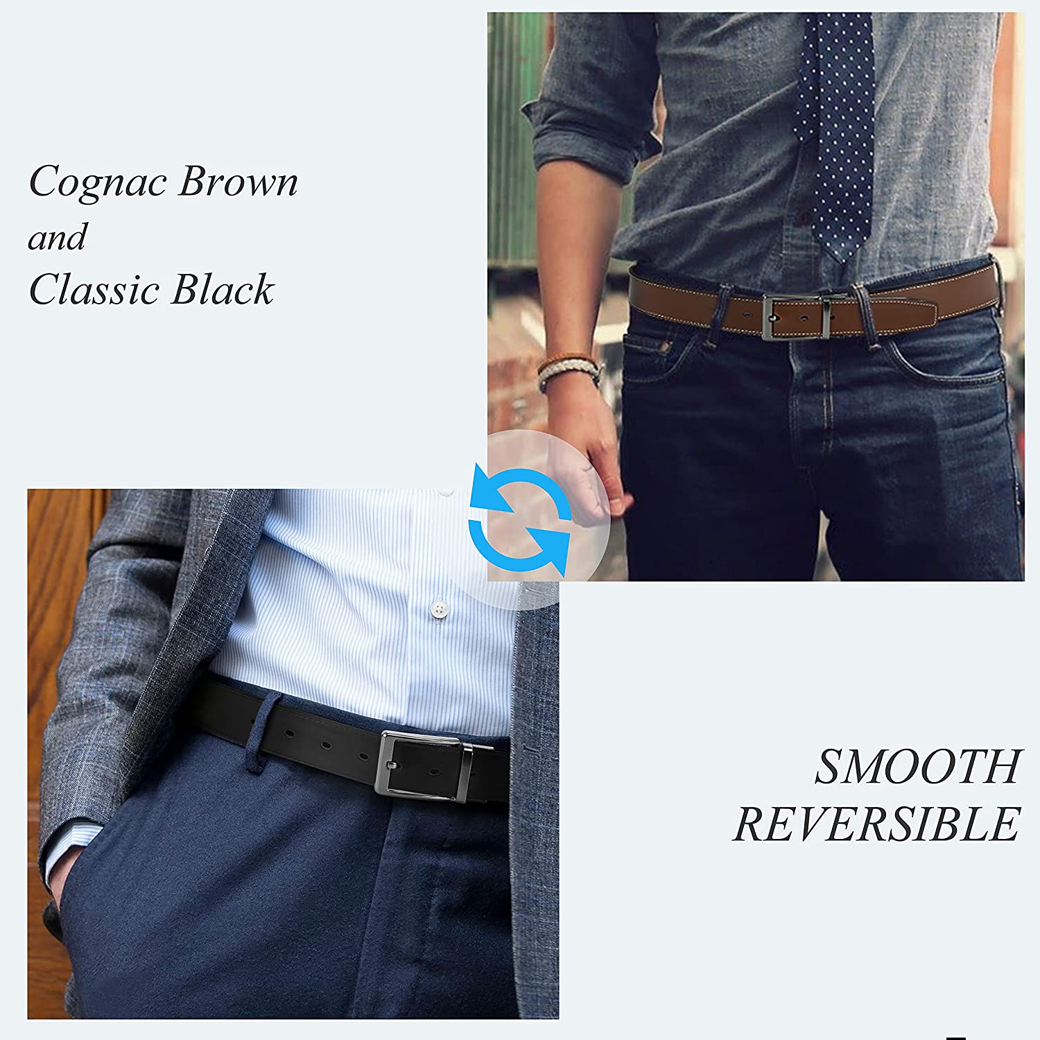 CHAOREN Reversible Belt for Men - Mens Belt Leather 1 3/8" Black & Brown for Dress Pants - Adjustable Belt Trim to Fit